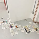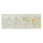 24 unique hand-painted bathroom tiles. Acrylic ink and varnish on ceramic tile.