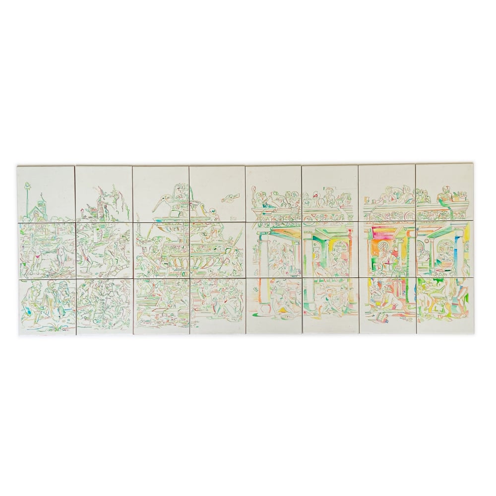 Originally exhibited as part of Fountain no.2 (2023) — an installation of painted bathroom tiles with references to Hans Sebald Beham’s Fountain of Youth from 1536 (the source material for this piece) as well as found images of boys peeing in public restrooms with their pants down (available separately).