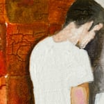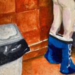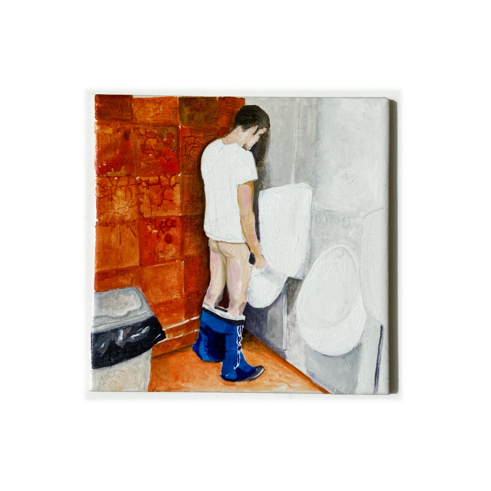 Originally exhibited as part of Fountain no.2 (2023) — an installation of painted bathroom tiles with references to Hans Sebald Beham’s Fountain of Youth from 1536 and found images of boys peeing with their pants down.
